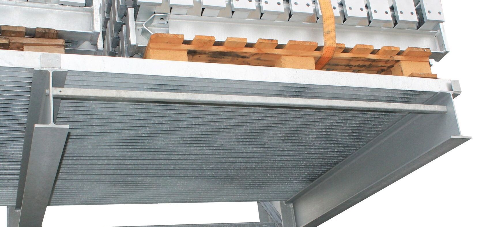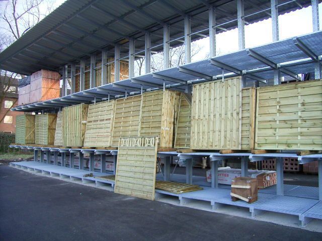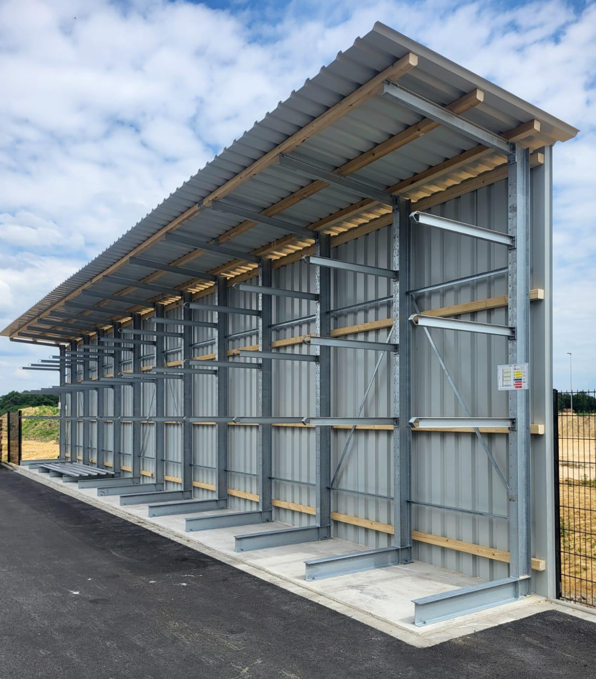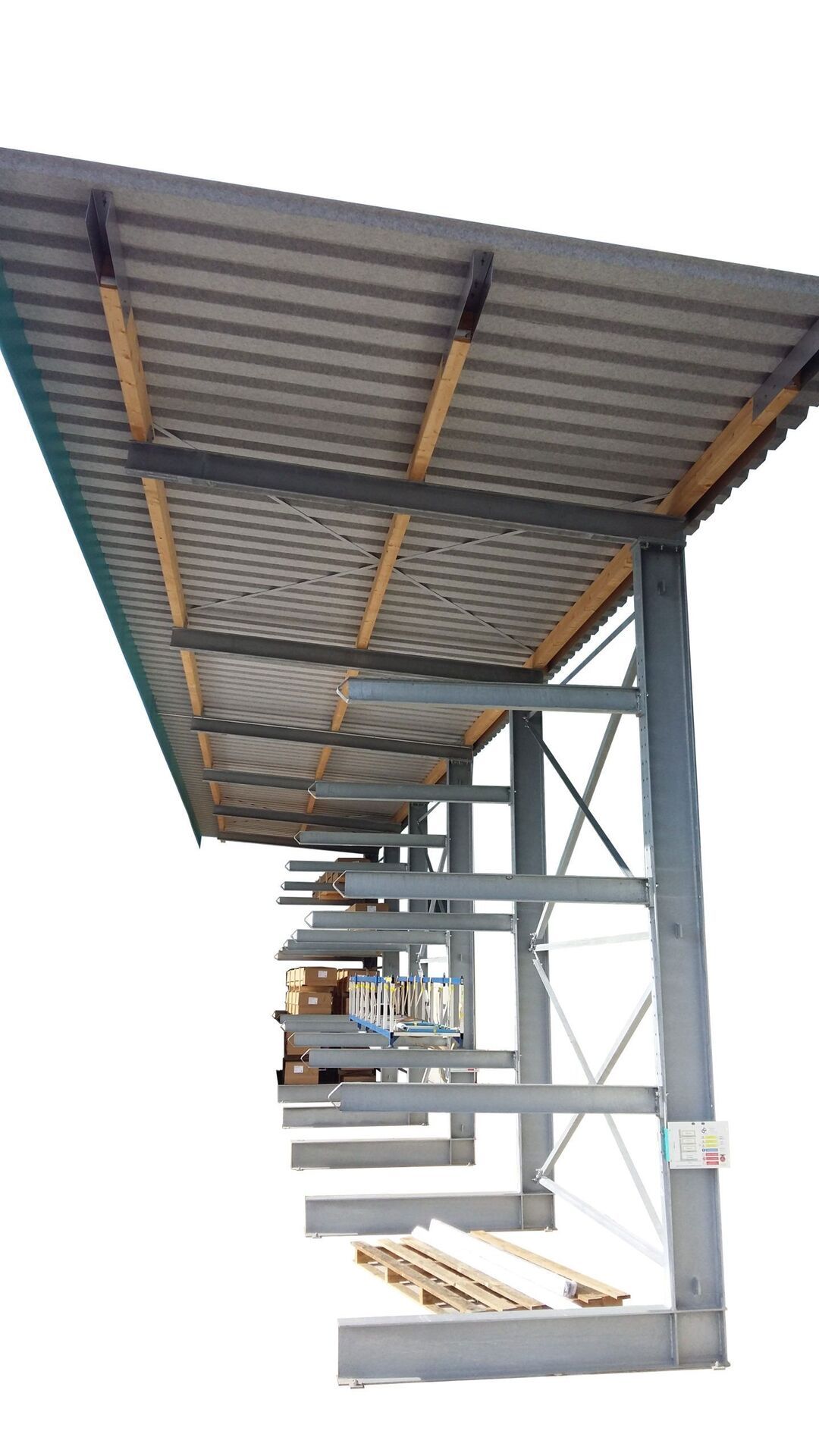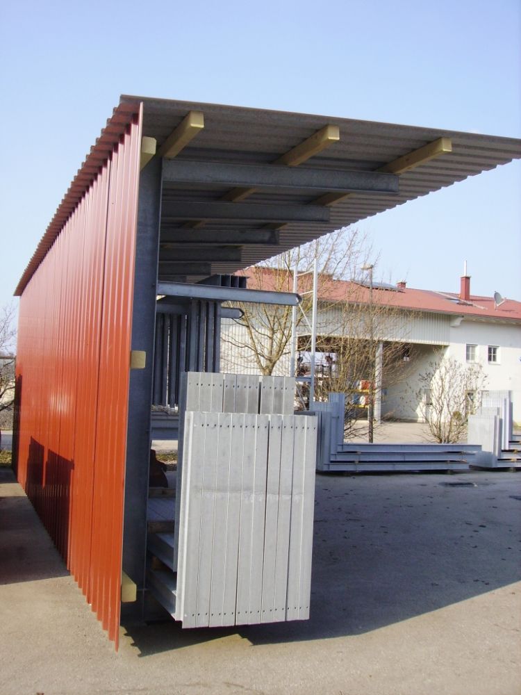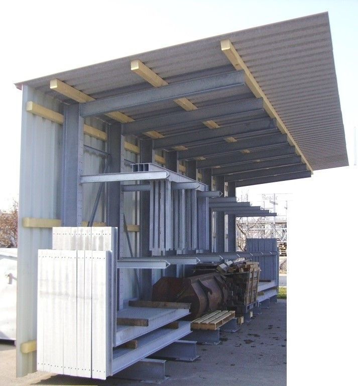 Kombinieren Sie die Konstruktion mit einer Überdachung – abgestimmt auf Wind- und Schneelasten. - Kragarmregale mit Gitterrostauflage