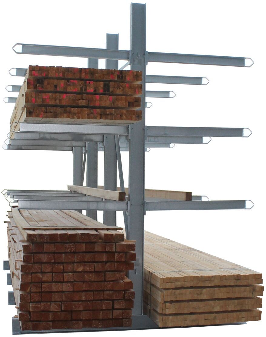 Ideal für Lagerbereiche, die nur von einer Seite zugänglich sind (z. B. an Wänden), und zur platzsparenden Nutzung. - Doppelseitige Kragarmregale