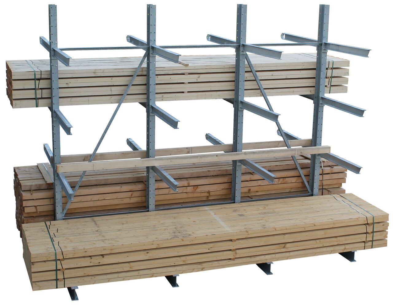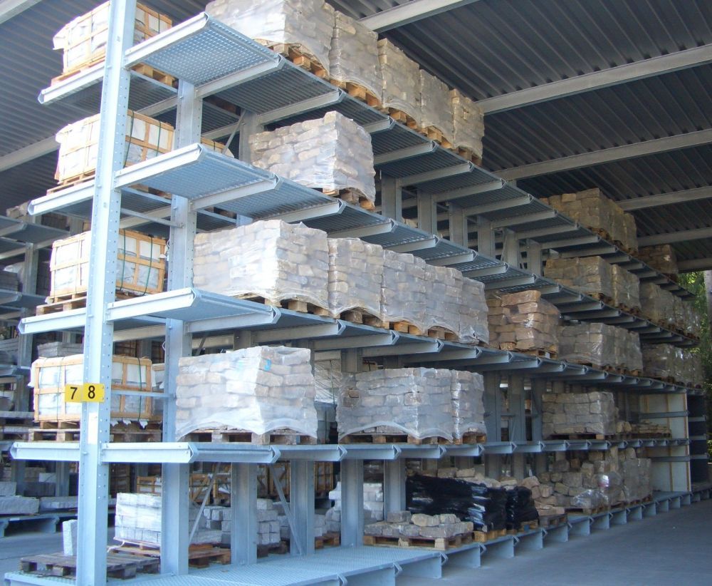 Bei Ausstattung der Lagerebenen mit Gitterrosten oder Palettentraversen dienen Kragarmregale auch als Lager für ungebundenes, vielfältiges und sehr schweres Lagergut in allen Längen.