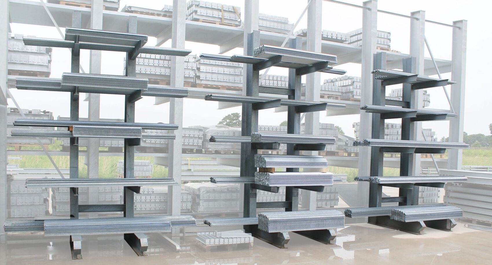 Kragarmregale haben keine störenden Rahmen im Lagerbereich. Sie eignen sich besonders für langes oder sperriges Material, das ohne Quertraversen gelagert wird.