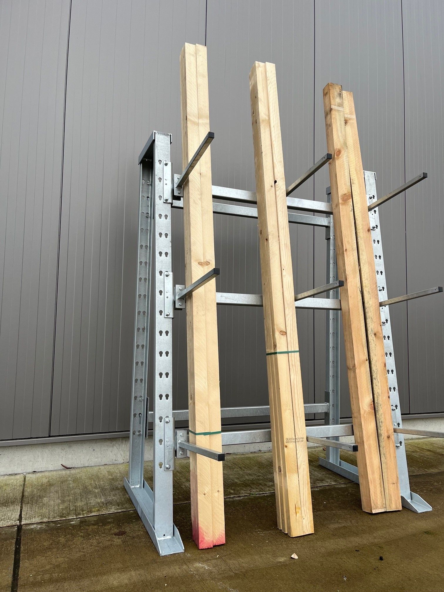 Die Funktionsweise ist natürlich identisch zu den feuerverzinkten Regalen! Die Ständer und die Kragarme sind in verschiedenen Farben lieferbar.