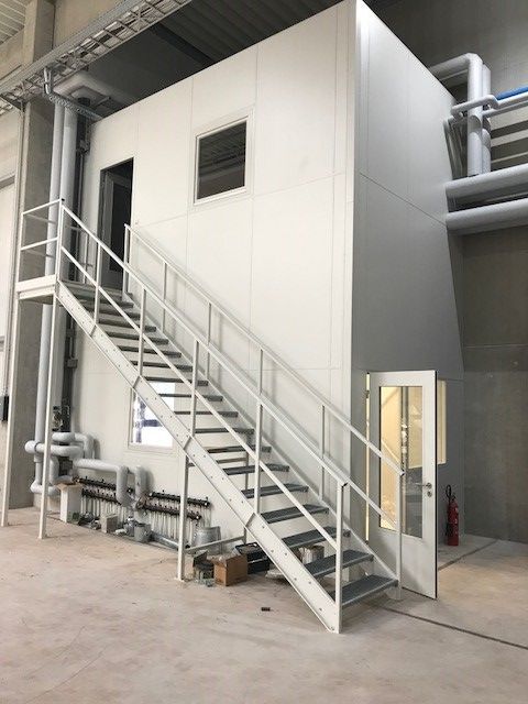 Wer direkt im Lagerumfeld arbeiten möchte, profitiert von unseren modulierbaren Meister- und Hallenbüros. Sie sind mit 82 mm Wandstärke und 56 mm Stahlrahmen konstruiert und mit 2 × 13 mm melaminharzbeschichteten Spanplatten ausgestattet. Wahlweise bieten wir selbsttragende oder abgehängte Mineralfaserdecken. Türen, Fenster, Dreh-/Kipp- und Schiebefenster sowie Innenausstattung sind selbstverständlich konfigurierbar – ganz nach Ihrem Bedarf.