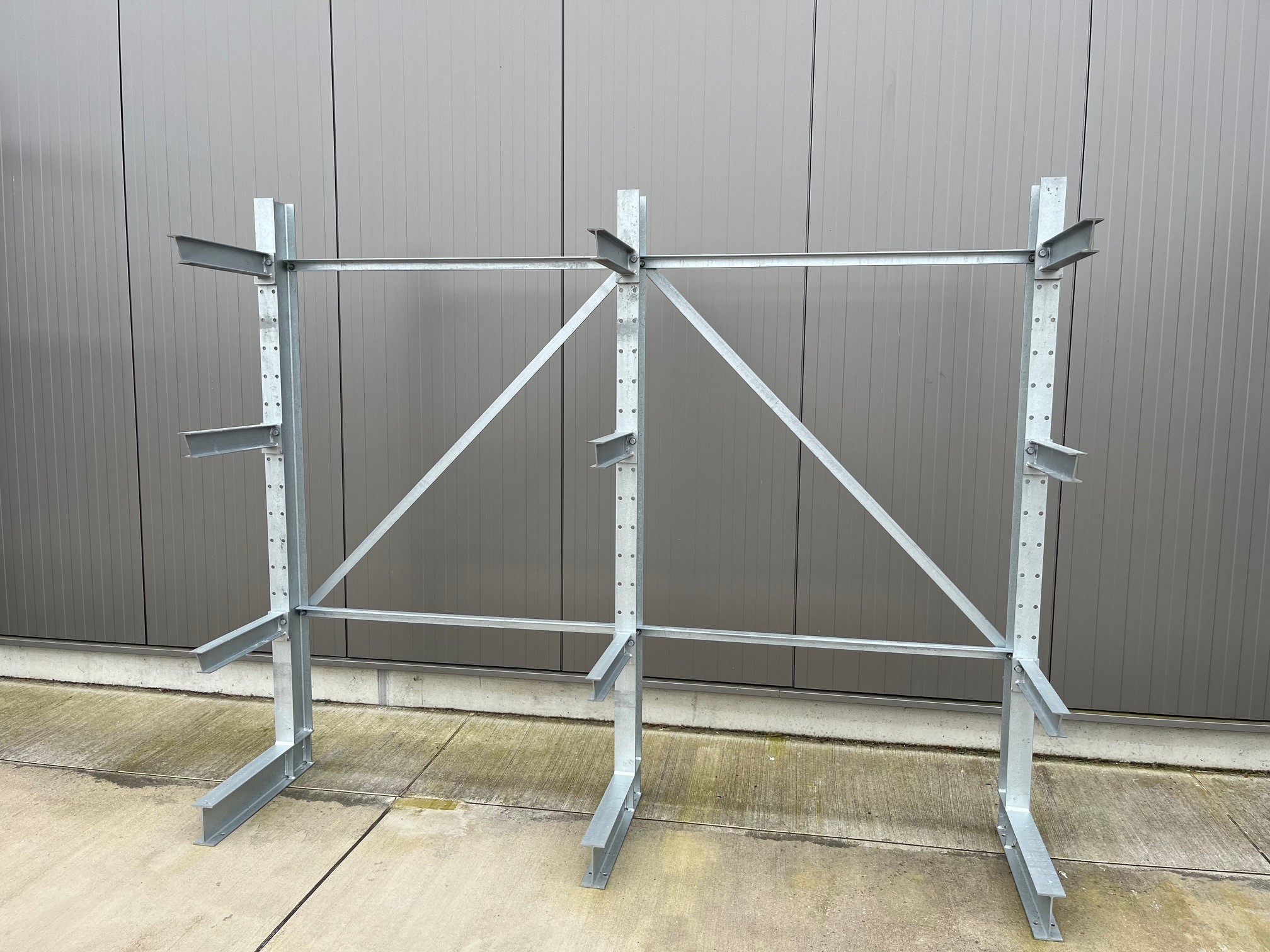 Kragarmregalanlage bestehend aus 3 Ständern, feuerverzinkt