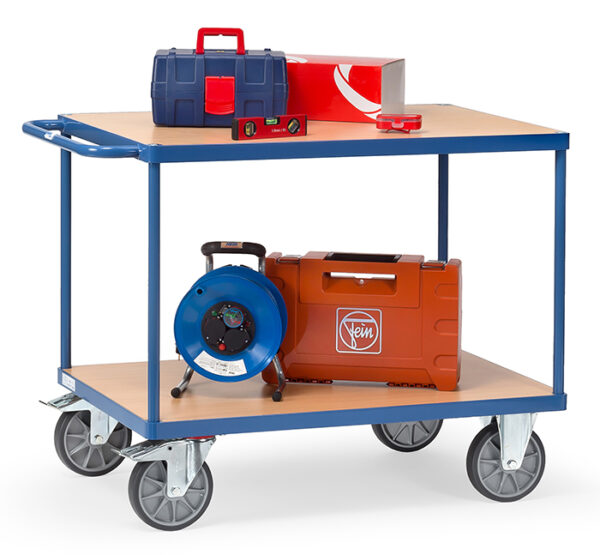 - Tischwagen mit dem MultiVario Baukasten-System aus Stahlrohr und Profilstahl geschweißt, pulverbeschichtet blau RAL 5007